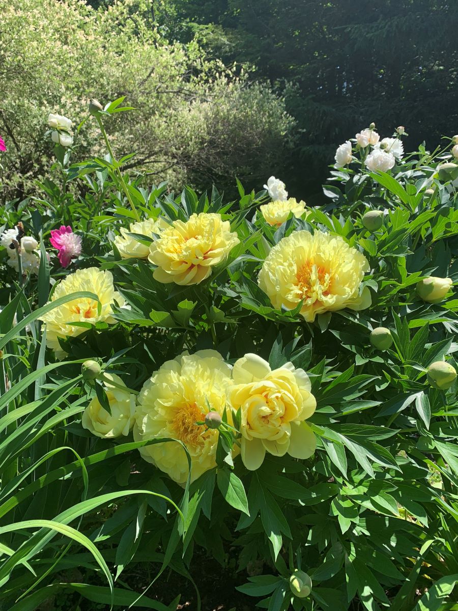 Serge Le Blancq a déjà décrit les raisons pour lesquelles ‘Bartzella’ était un Coup de cœur. Quant à moi, c’est son abondance florale qui m’a séduite en premier, outre le fait que c’était ma première pivoine à fleurs jaunes! Mon plant, bien établi maintenant, peut produire jusqu’à une trentaine de fleurs en une seule saison : un véritable feu d’artifice jaune soutenu, légèrement doré au cœur, souvent teinté de rouge à la base des pétales. La floraison s’étale sur plusieurs semaines, parfois avec des boutons secondaires qui prolongent le spectacle jusqu’à la fin de juin dans mon jardin de zone 5.